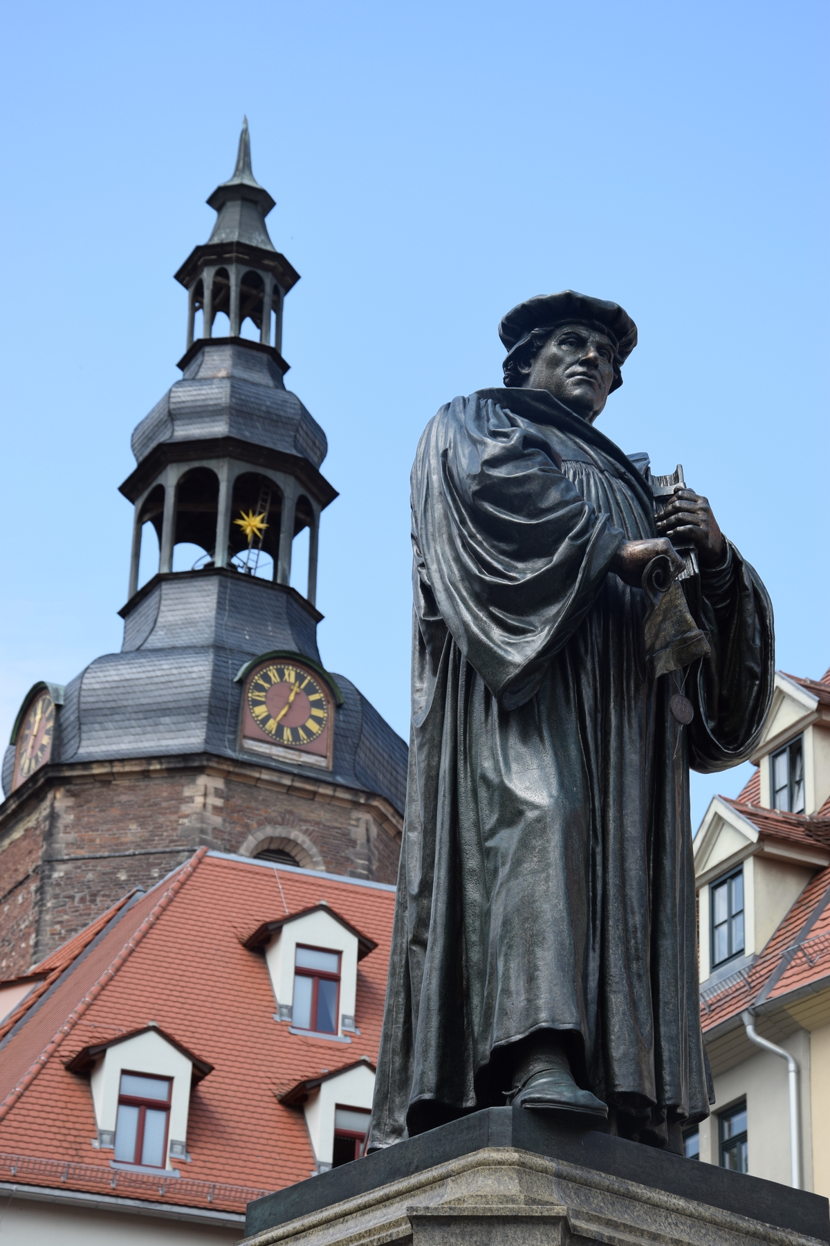 Luther Márton thüringiai parasztcsaládból származott, édesapja nem sokkal fia születése előtt érkezett Eislebenbe, ugyanis az itteni bányák jó jövedelemmel kecsegtették a város lakóit, de aztán pár hónappal később a közeli Mansfeldbe költözött tovább a család. Luther Márton 1483. november 10-én látta meg a napvilágot – a gyermeket a szülőházához közeli Péter–Pál-templomban keresztelték meg. A templom, amelynek legutóbbi, teljes körű felújítását-átalakítását öt éve fejezték be, minden négyzetcentiméterével a keresztségről tesz tanúbizonyságot: a padló és az üvegablakok hullámzó díszítése, valamint az evangélikus templomban nem annyira megszokott, langyos vizű keresztelőmedence, amelyben a templomban álló feszület Krisztusának arca tükröződik. A templom padjai, amelyeket a környék alma-, cseresznye- és diófáiból készítettek helyi, szász-anhalti mesterek, hétszázötven fős lutheránus gyülekezetet szolgálnak a gótikus boltívek alatt. A templomfelújítás óta huszonnégy keresztelőt ünnepeltek a templomban – a legkisebb megkeresztelt kétéves volt. Hogy miért olyan fontos a keresztelés? Mi történik ott és akkor, ami az ember egész későbbi életén tovahullámzik? Maga Luther ad erre választ, aki megkísértetései között, hogy lelkét erősítse, ezt írta fel a falra a visszaemlékezések szerint: Baptisatus sum, azaz meg vagyok keresztelve.