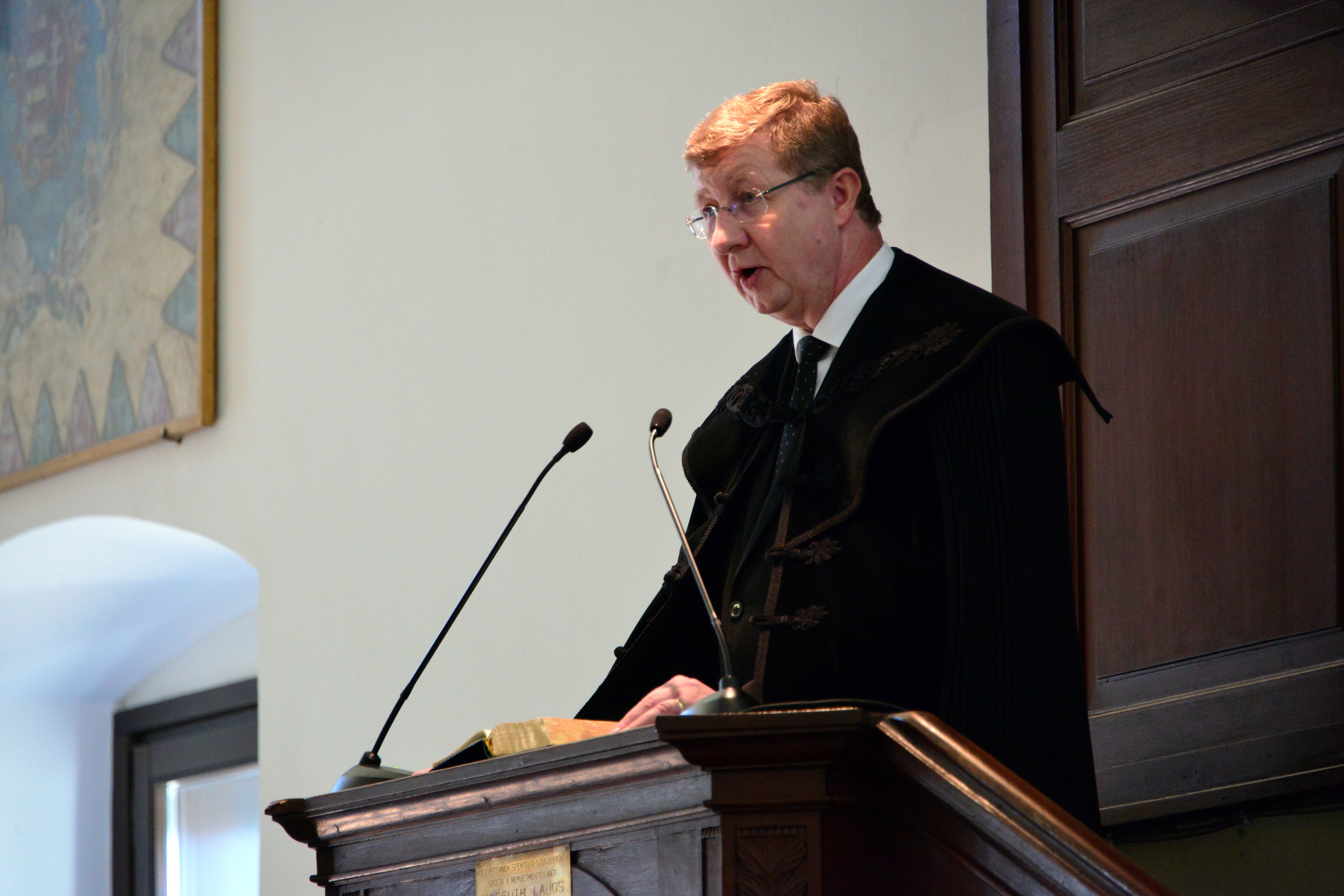 Bölcskei Gusztáv, a Debreceni Református Hittudományi Egyetem rektora a Debreceni Zsinat jelentőségéről, és a zsinati dokumentumok egyházszervező hatásáról tartott előadást. A felvezetésében három különböző korszakból vett idézettel támasztotta alá azt, hogy az 1567-ben született iratok időtől függetlenül minden korszakban meghatározó jelentőségű gondolatokat, elveket, hitvallást tartalmaznak. „Az akkori aláírás nagy lépés volt. Ez határozza meg, hogy elsősorban keresztények vagyunk, utána reformátusok, majd magyarok” – mondta Bölcskei Gusztáv.