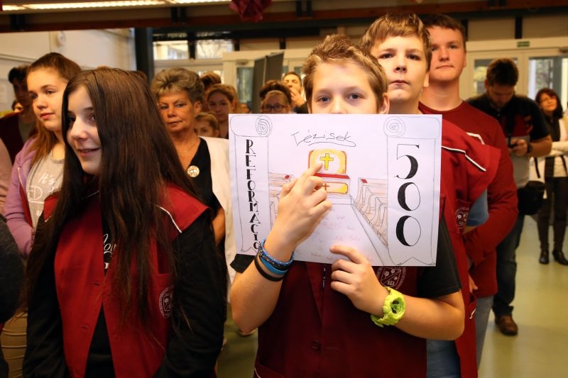 Bent már javában zajlik a program, életre kelt, izeg-zizeg, nyüzsög, sürög-forog az iskola. Jóleső izgalommal készülnek a diákok, hamarosan ők következnek, bemutatják, nekik mit jelent a reformáció. Rapp, hip-hop, közös tánc és éneklés, rajzok és szójátékok nyelvén adják vissza a saját „reformáció-fordításukat”.
