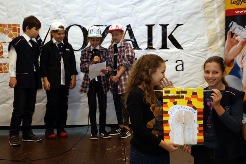A református iskola tavaly jelentkezett – ahogy ők nevezik – erre a rendkívüli programra, így nagy örömmel fogadták, hogy idén ők a Mozaiktúra első állomása. „Különleges dolog történik most itt: észre sem veszik, de önfeledten, szórakozás közben tanulnak a diákjaink” – mutat rá Pavletitsné Egressy Mária Lilla igazgató. Mint mondja, közelebb kerül egymáshoz élmény, ismeretanyag, múzeum és gyerek. Olyan múzeumokat ismerhetnek meg a gyerekek, amikről korábban lehet, hogy nem is hallottak és amikor hazaviszik ezek jó hírét, családi programmá válhat a múzeumlátogatás. „Szeretnénk, ha nyitottabbá válnának, ha az esetlegesen még fennálló falak leomlanának” – emeli ki.