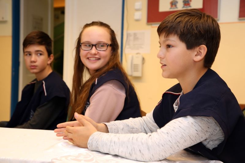 A novemberi szürkeségben is „mosolyog" az iskola vidámszínű épülete az újpesti panellakások között. Piros köpenyes diákok mutatják, merre haladjak a kockaépületek egyhangú útvesztőjében. Izgatottan mesélik, hol tartanak a napirendben. A Mozaik Múzeumtúra iskolai edukációs programsorozata az Örökség Kultúrpolitikai Intézet támogatásával a Felelős Szülők Iskolája szervezésében idén november 9-én a Benkőből indulva kezdi meg útját, amely során hét iskolába viszik el több múzeum élményekkel teli múzeumpedagógiai foglalkozásait.