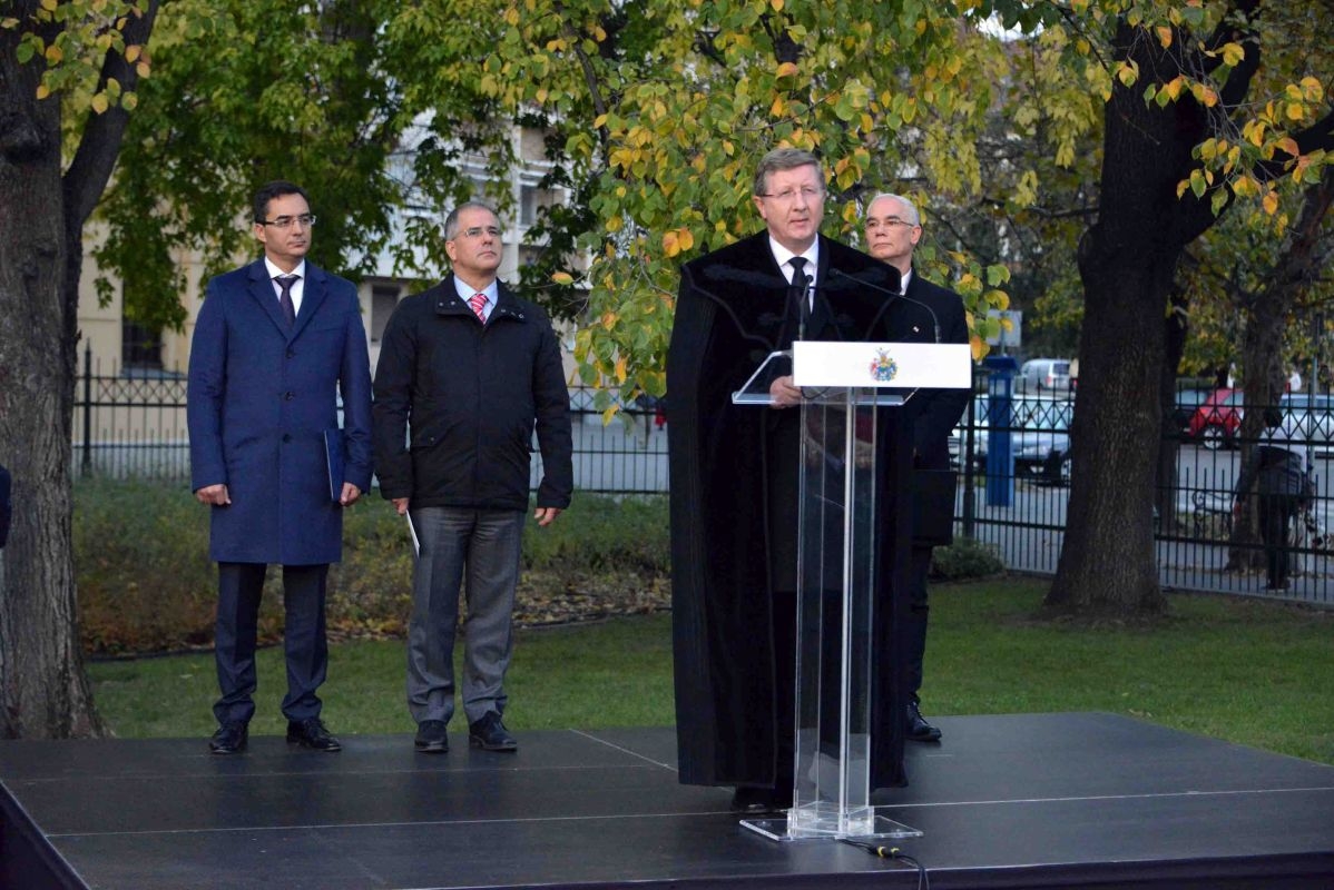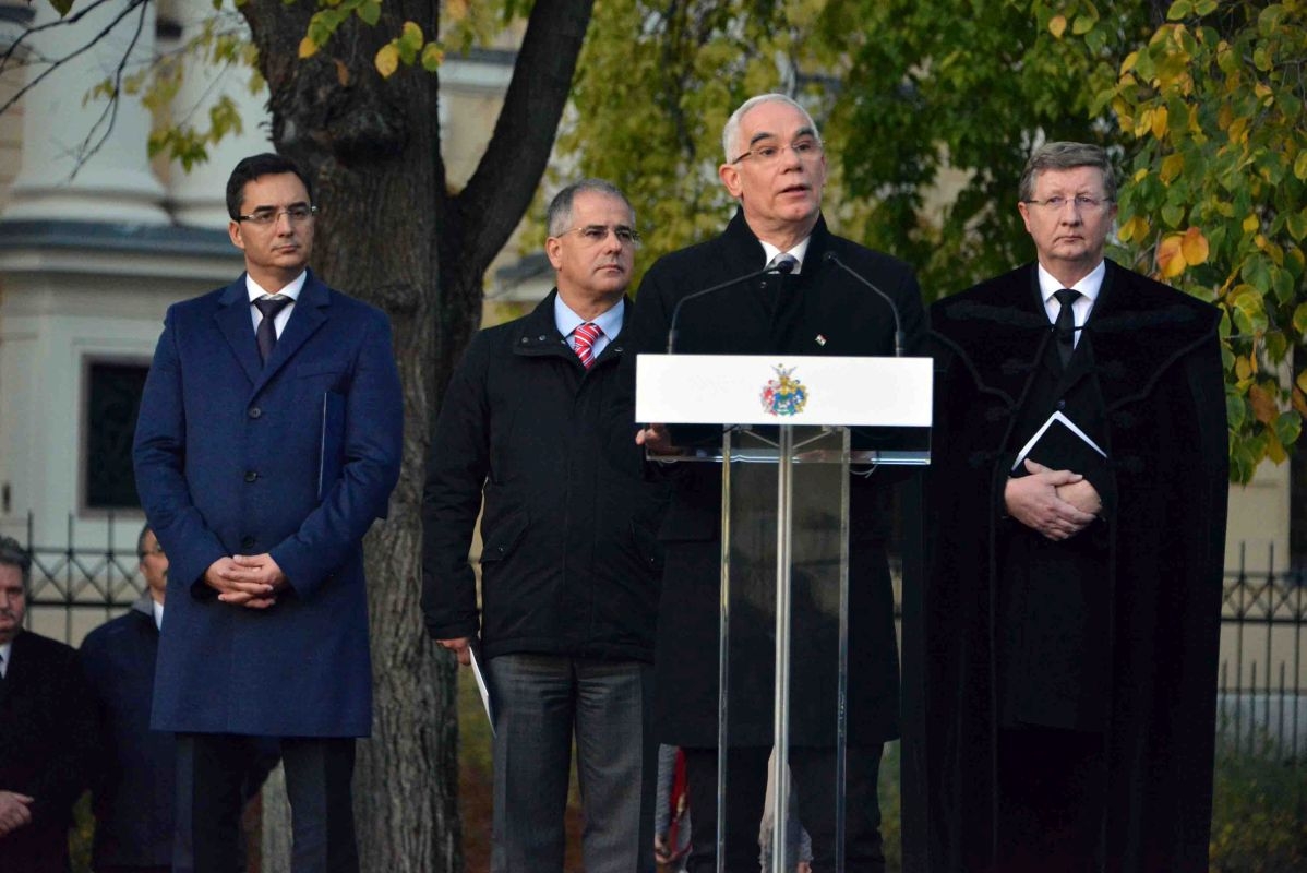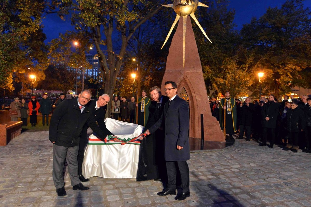 Az emlékművet Fekete Károly, Balog Zoltán, Kósa Lajos és Papp László leplezte le, majd elhelyezték az emlékezés koszorúit. Igei szolgálatában Fekete Károly a Fil 2,5-11 verseit helyezte az ünneplők szívére. Isten áldását kérte az emlékműre és üdvösséges önismeretünk felismerésére, hitünk erősítésére.