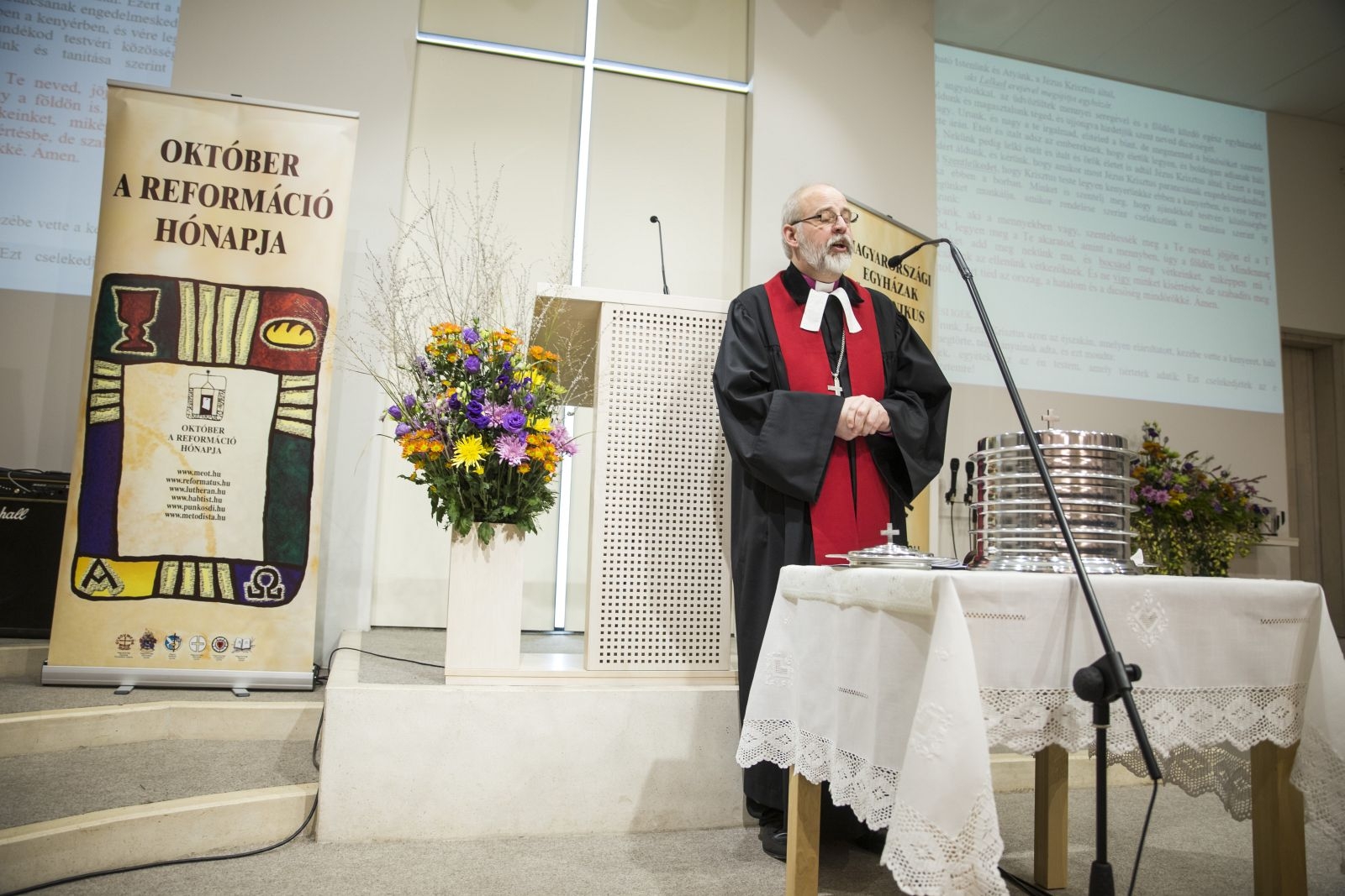 Együtt emlékeztek a reformációra Magyarországi Egyházak Ökumenikus Tanácsa (MEÖT) tagegyházai az Agapé Pünkösdi Gyülekezetben tartott hálaadó istentiszteleten 2016. október 30-án.